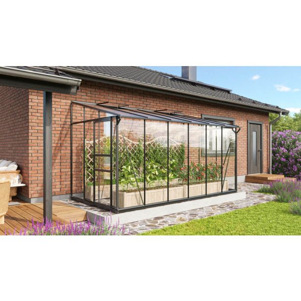Naslonjeni rastlinjak Ida s svojo majhno tlorisno površino in polno višino omogoča gojenje zelišč in zelenjave ter prezimovanje visokih lončnic na vrtu pred vrtom, na terasi ali balkonu.