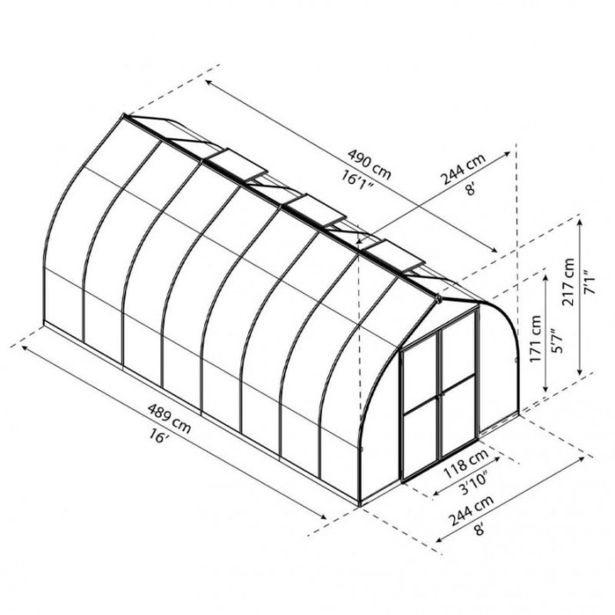 Domov > Trgovina > Vrt in okolica > Rastlinjaki > Rastlinjak, votle plošče > RASTLINJAK, VOTLE PLOŠČE PALRAM BELLA 8X16 SREBRNA Š244 X D490 X V219