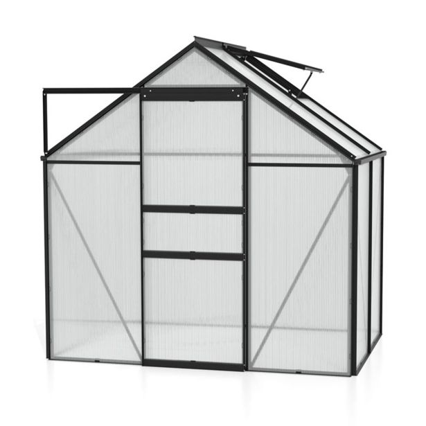 Komplet za rastlinjak iz praškasto lakiranih aluminijastih profilov in zasteklitev iz približno 4 mm debelih UV-stabiliziranih votlih komornih plošč (PC).