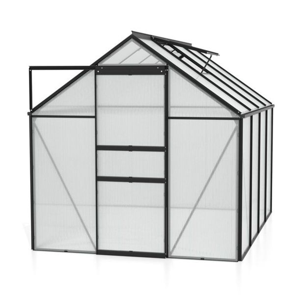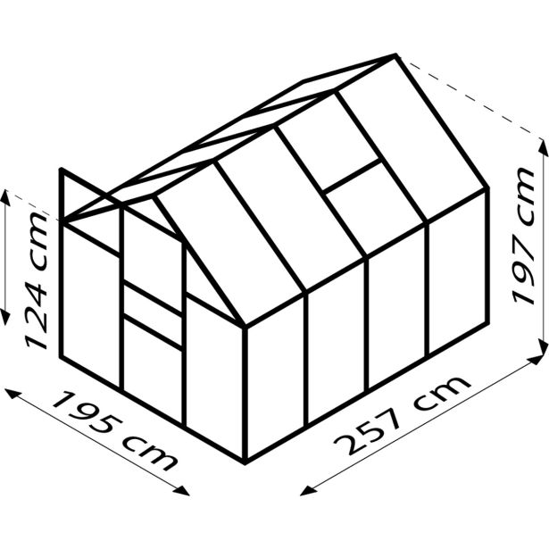Komplet za rastlinjak iz praškasto lakiranih aluminijastih profilov in zasteklitev iz približno 4 mm debelih UV-stabiliziranih votlih komornih plošč (PC).