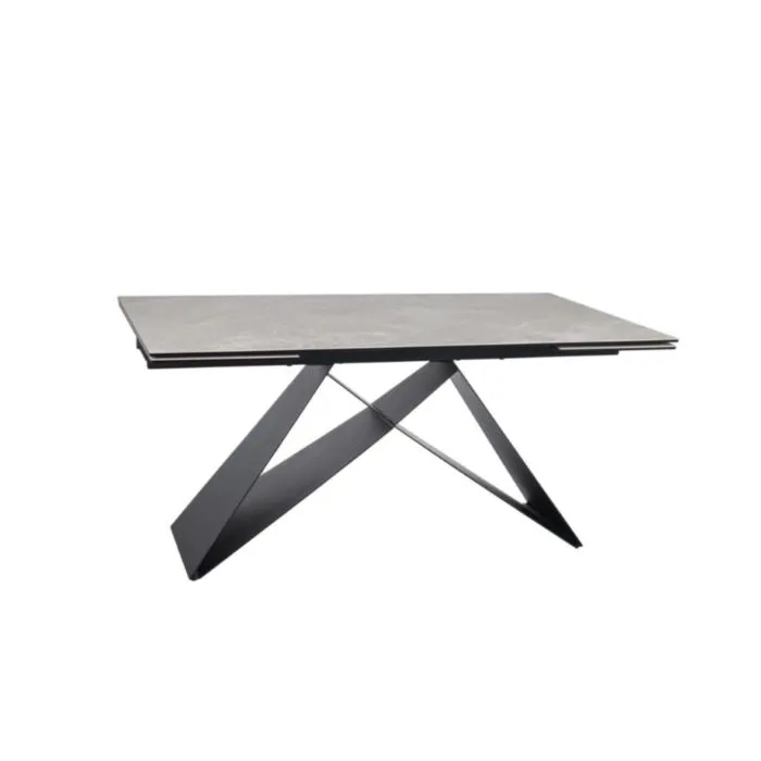 Raztegljiva jedilna miza ALEKSEJ, bo prinesla svežino in eleganco v vaš prostor. Narejena je iz kakovostnega kaljenega stekla in vrhunske italijanske keramike. Ogrodje je narejeno iz kovine. Ogrodje je v črni mat barvi, mizna plošča je v krem mat barvi z videzom marmorja. S svojo obliko in barvo popestri vsak prostor.