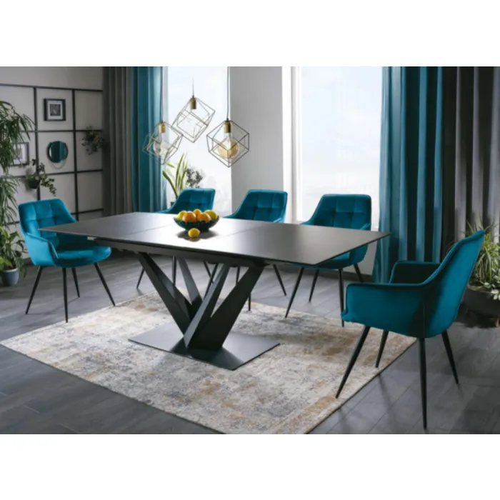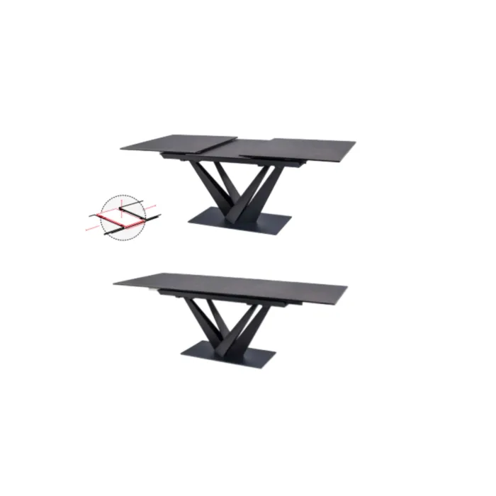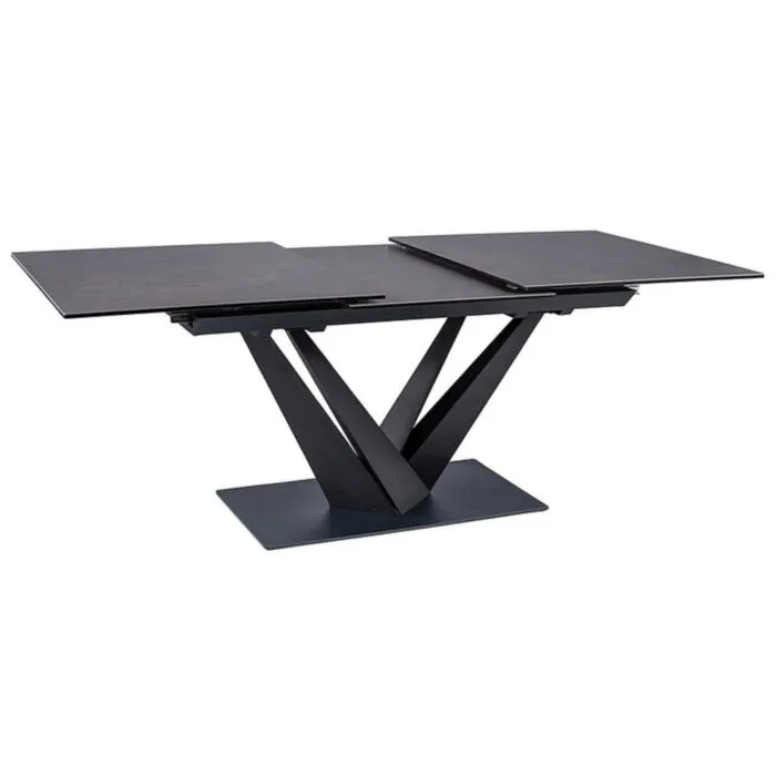 Raztegljiva jedilna miza KRONA 160 je narejena iz kvalitetnega kaljenega stekla s keramiko. Okvir je iz metala, dobavljiva je v kombinaciji črne mat ter temno sive barve. Zaradi svoje sposobnosti, da se raztegne na 220 cm bo zelo priročna v vsaki hiši.