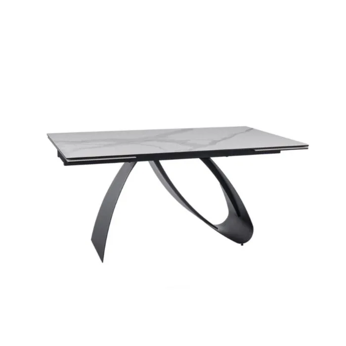 Raztegljiva jedilna miza OZI, bo prinesla svežino in eleganco v vaš prostor. Narejena je iz kakovostnega kaljenega stekla in vrhunske italijanske keramike. Ogrodje je narejeno iz kovine. Ogrodje je v črni mat barvi, mizna plošča je v beli mat barvi z videzom marmorja. S svojo obliko in barvo popestri vsak prostor.