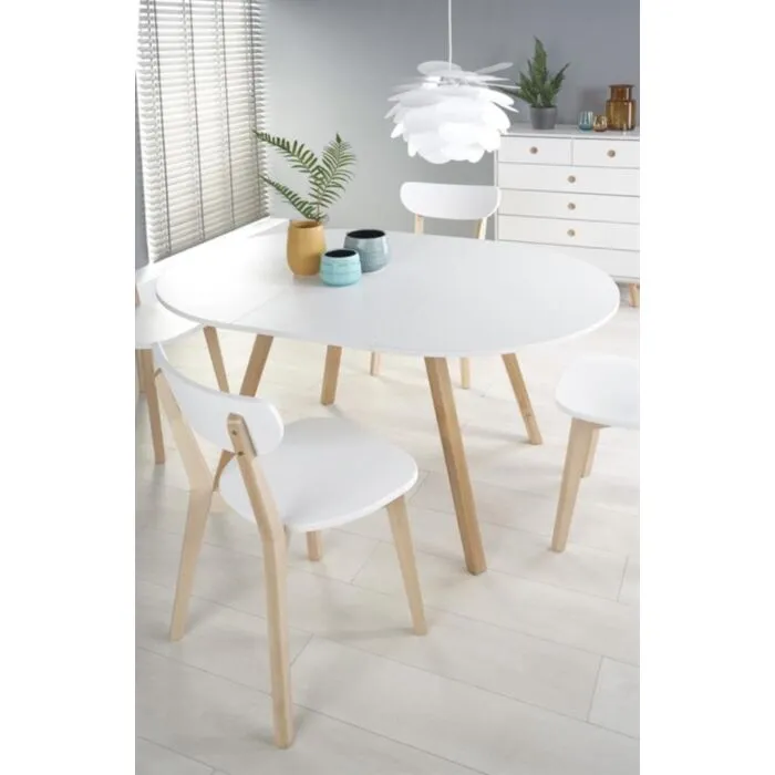 Raztegljiva miza RUBIN bela je kakovostna masivna jedilna miza, ki se lahko podaljša za 40 cm.