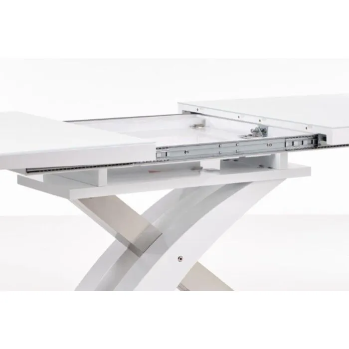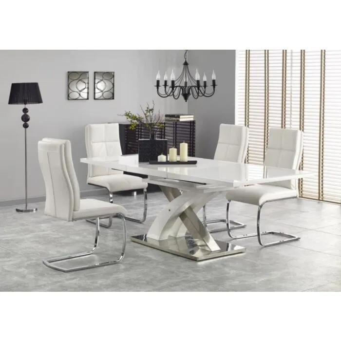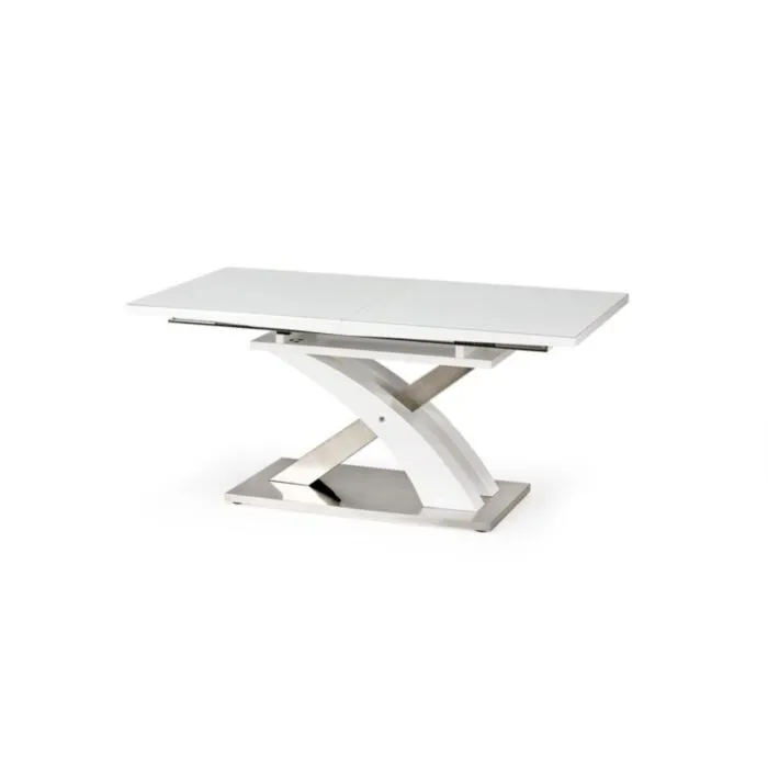Raztegljiva jedilna miza SARDON1 je kakovostna, sodobna in hkrati prefinjena. Dizajn navdaja jedilni prostor z eleganco in praktičnostjo. Lahko jo podaljšate saj je raztegljiva in tako omogočite namestitev osem ali več oseb za njo. Mizna plošča je izdelana iz lakiranega MDF- ja v beli barvi in stekla. Ogrodje pa je izdelano iz lakiranega MDF – ja bele barve in kromiranega jekla.