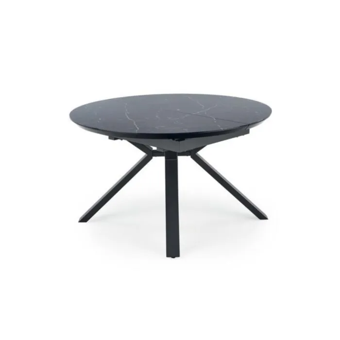 Raztegljiva miza MAJ, bo vašemu prostoru prinesla svežino in eleganco. Narejena je iz kakovostnega stekla in MDF-ja v videzu črnega marmorja. Noge so narejene iz kovine v črni barvi.