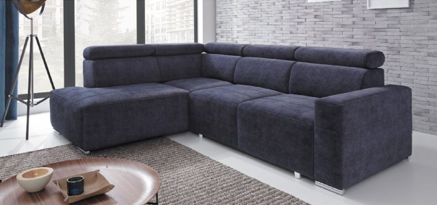 Sedežna garnitura BERGAMO je zelo posebnega sodobnega videza z nastavljivimo vzglavniki. Na voljo v različnih barvnih tkaninah. Vsebuje tudi ležišče in predal. Dimenzije (š/g/v): 265 x 202 x 100 cm.