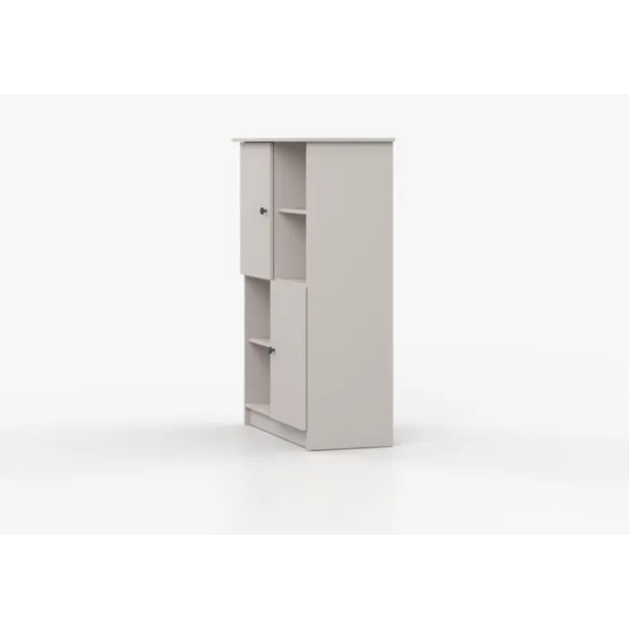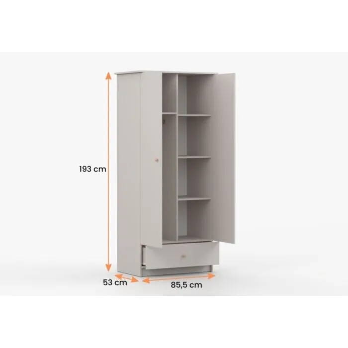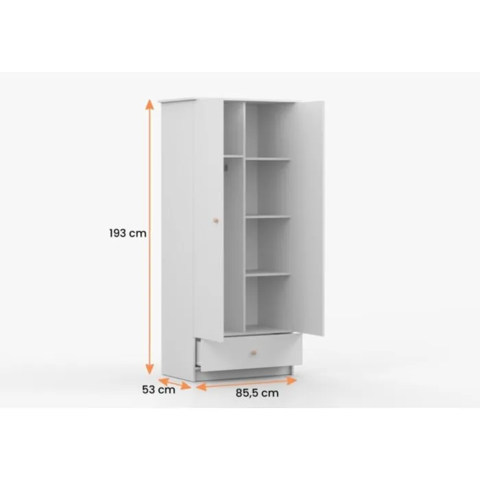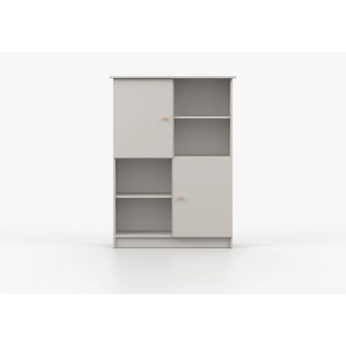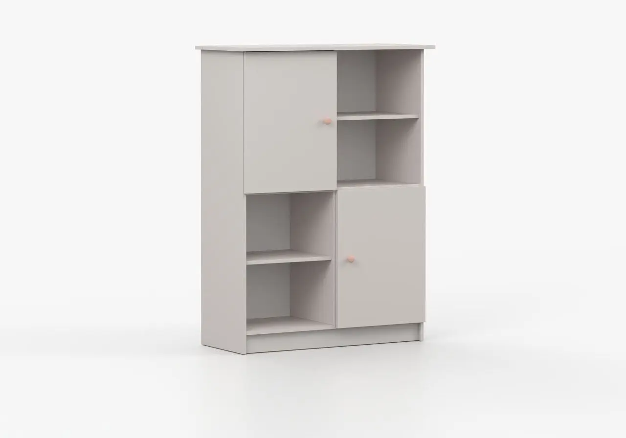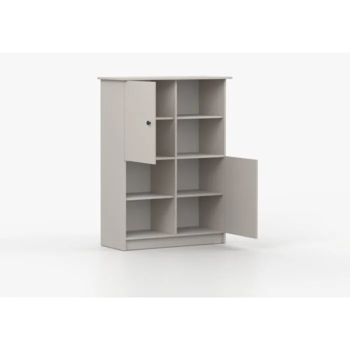 Regal SNEŽINKA z kar osmimi predali je praktičen in univerzalen. Združuje sodoben slog s funkcionalnostjo. Svetla barva z ročaji doda čar in daje ceolotni notranjosti edinstven videz. Na voljo je v dveh barvah: bela in kašmir. Za ročaje ima kakovostne gumbe, katerim lahko določate barvo antracit ali bež. Narejena je iz visokokakovostne laminirane plošče debeline 16 mm.