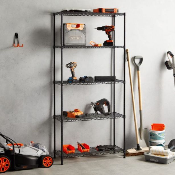 Organizirajte svojo delavnico, domačo pisarno ali garažo s 5-stopenjskim žičnim regalom VonHaus. Izdelan iz odpornega jekla, ima vsaka polica nosilnost 100 kg in prezračevano zasnovo za enostavno čiščenje. Prilagodite višino polic po svojih željah in ohranite urejenost vašega prostora.