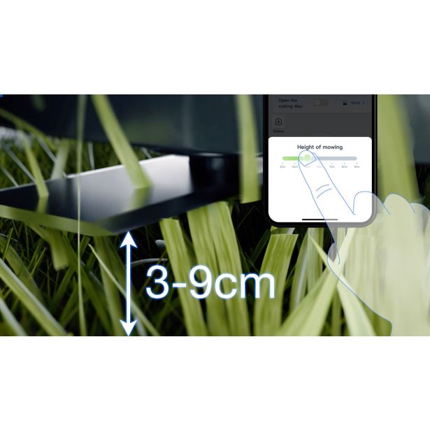 Preko aplikacije v telefonu lahko nastavite višino košnje od 3 cm do 9 cm in s tem se Goat A1600 RTK zlahka prilagaja različnim vrstam trave in zagotavlja popolno negovano trato vsakič, ko kosite.