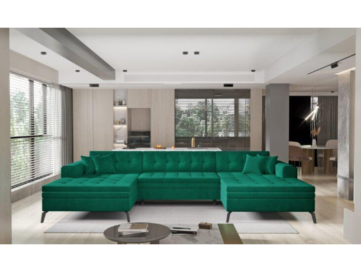 Sedežna garnitura AMIGO 2 je obogatena s spalno funkcijo z veliko površino, kar 295 x 110 cm. Zanesljiv sistem razpiranja delfin. Vzmetena je z valovitimi vzmetmi v kombinaciji s peno. Sedežna je udobna ter prijetna na otip, saj je izdelana iz mehke velvet tkanine. Sedežna je univerzalna zato ji ni potrebno določiti kota. Lahko jo postavite levo ali desno.