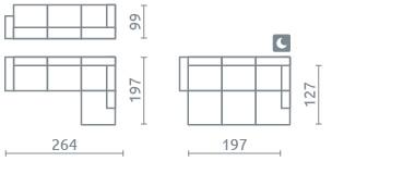 Sedežna garnitura AMOS z ležiščem, prijetnega in elegantnega videza s katerim popestri vaš prostor. Raztegljiva sedežna garnitura s predalom je na voljo v različnih materialih in barvah. Dimenzije (š/g/v): 264 x 197 x 99 cm.