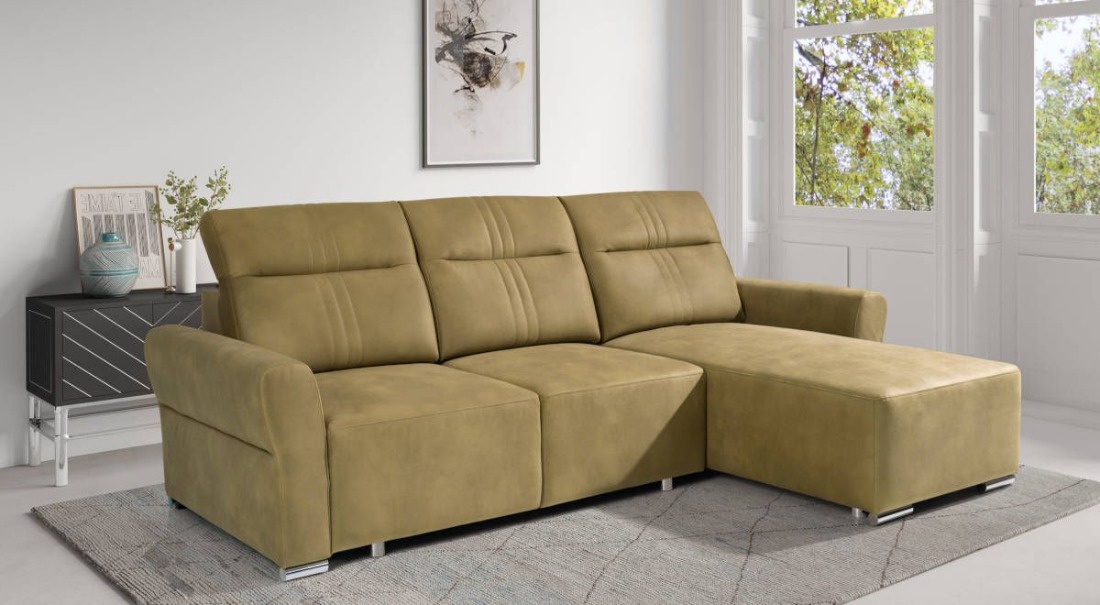 Funkcionalna in udobna sedežna garnitura v obliki črke L Cawo, ki bo izpolnila vaša pričakovanja, je lahko idealna izbira za vašo dnevno sobo. Ta kotna sedežna garnitura ima številne praktične rešitve, ki vas bodo zagotovo navdušile. Kotna sedežna garnitura s prostornim predalom in posteljno funkcijo, je namenjena ljudem, ki cenijo udobje, funkcionalnost in estetiko. Polnilo v obliki valovite vzmeti in visokoelastične pene zagotavlja visoko udobje med vsakodnevnim počitkom. Raztegljivi sistem Puma omogoča hitro in enostavno preoblikovanje sedežne garniture v udobno ležišče za goste. Po želji lahko izberete tkanino in barvo.