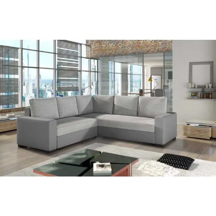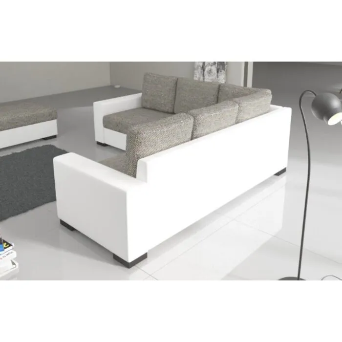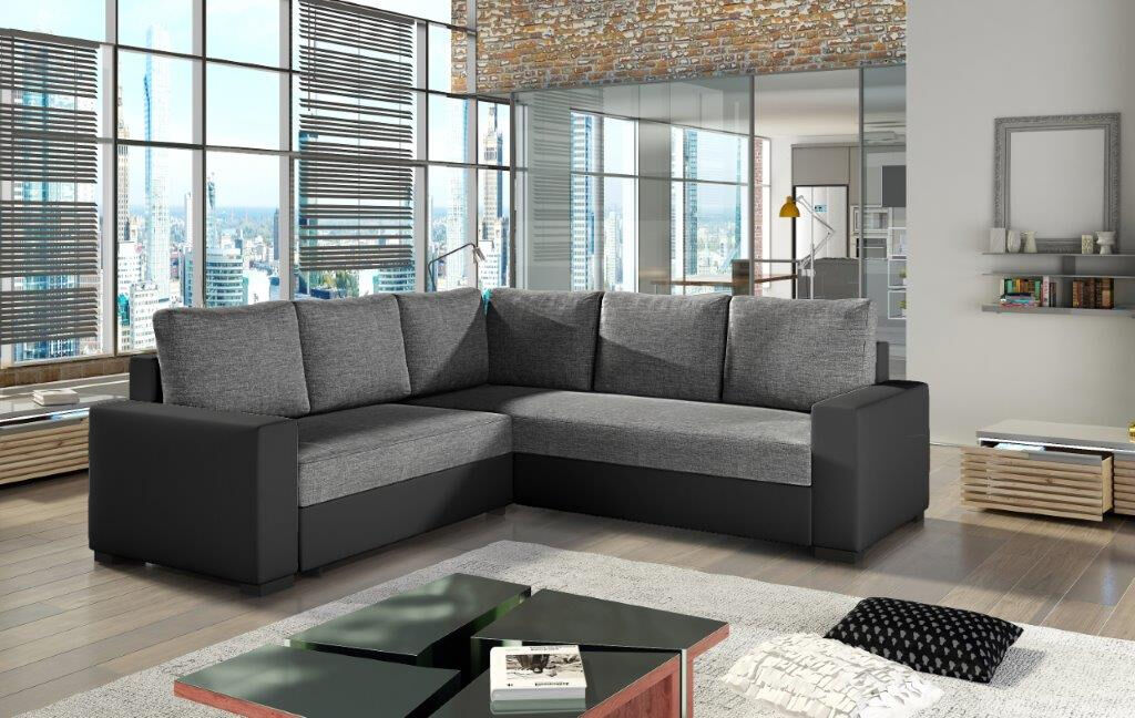 Sedežna garnitura CORY 2. Narejena iz kvalitetnih materialov, oblazinjena v kombinaciji umetnega usnja in kvalitetnega tekstila. Sedežna garnitura ima tudi pomožno ležišče ter zaboj za shranjevanje. Vzmetena je z Bonnell vzmetmi. Dobavljiva v več barvah.