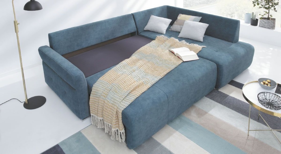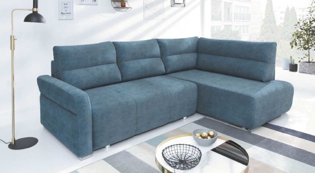ki navdušujemo s svojim izgledom, nudi vse kar potrebujete za počitek. Je edinstvena in cenovno prijazna rešitev za vsakogar ki išče izjemno udobno in uporabno sedežno garnituro. Sedežna garnitura vsebuje izvlečno ležišče ter velik predal. Ležišče je dimenzije 140x210cm. Predal se skriva pod celotnim počivalnikom, kateri se s pomočjo dvižnega mehanizma dvigne. V res velik predal lahko pospravite blazine, okrasne blazine, odeje,… Blazine garniture so moderno pošite, naslon za roke je pod rahlim nagibom za udobno počivanje. Izbirajte med različnimi tkaninami in pestrimi barvami, ter si ustvarite svojo primerno sedežno garnituro za vaš dom. Vse tkanine so nežne in žametne na otip in puščajo prijeten občutek ob stiku z kožo. Vse vzorce in barve si lahko ogledate v živo v naših poslovalnicah.