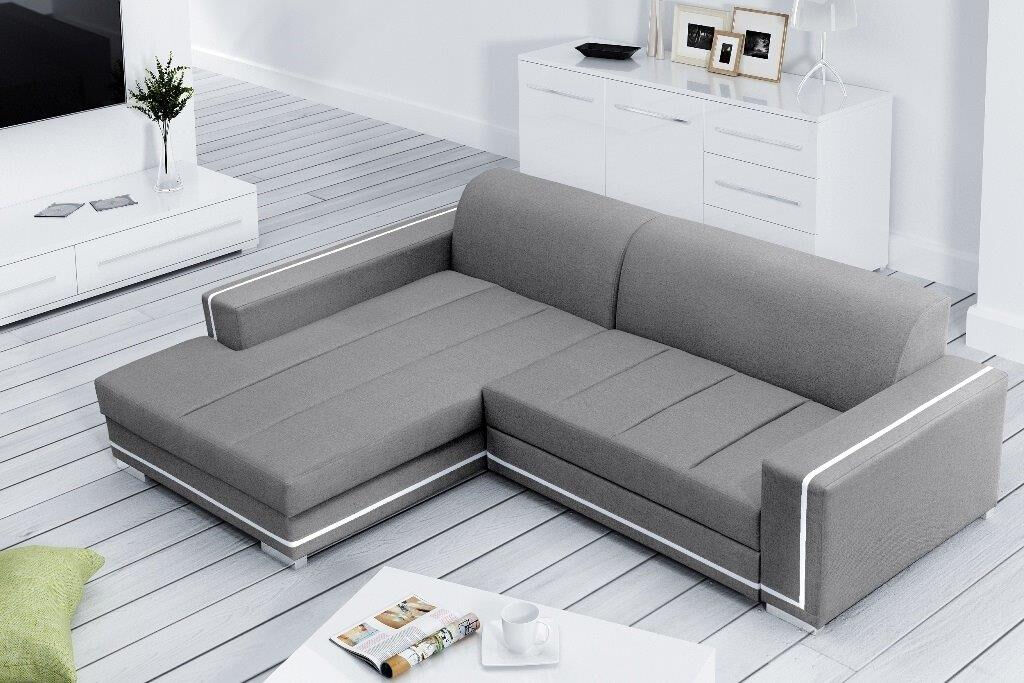 Sedežna garnitura MIRA je zelo praktična in funkcionalna. Narejena je v kombinaciji blaga ter umetnega usnja. Garnitura ima levi ali desni kot, katerega morate izbrati. Garnitura je vzmetena z valovitmi vzmetmi. Vsebuje pomožno ležišče katero se raztegne z delfin mehanizmom, ter ima zaboj za shranjevanje posteljnine.