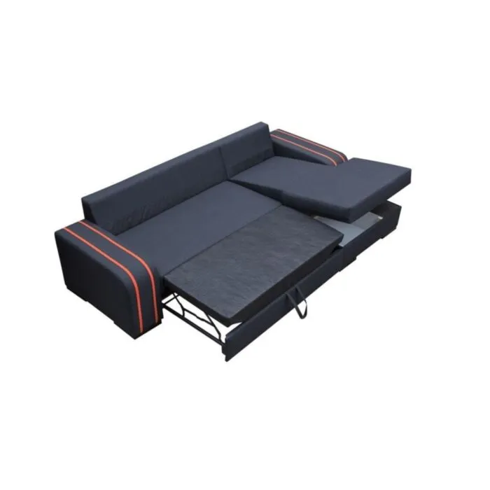 Sedežna garnitura PETER 2 je zelo praktična in funkcionalna. Narejena je iz kvalitetnega blaga ter detajli iz umetnega usnja. Garnitura ima levi ali desni kot, katerega morate izbrati. Vzmetena je z valovitimi vzmetmi. Raztegne se v ležišče ter vsebuje zaboj za shranjevanje. Zraven prejmete pripadajoče blazine, kakor vidno na sliki.