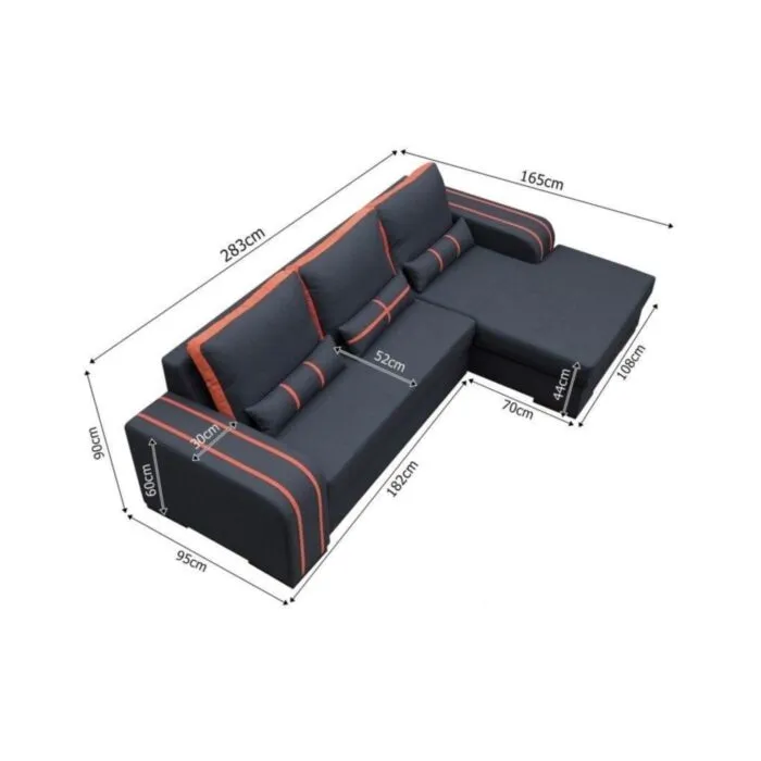 – D: 283 cm x G: 165 cm x V: 90 cm