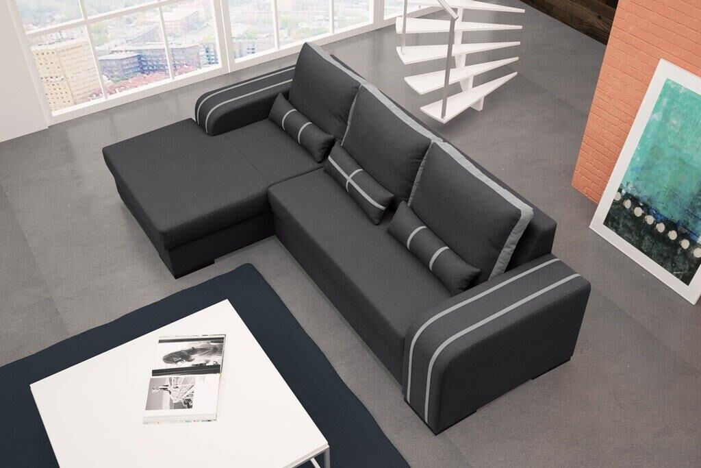 Sedežna garnitura PETER je zelo praktična in funkcionalna. Narejena je iz kvalitetnega blaga. Garnitura ima levi ali desni kot, katerega morate izbrati. Vzmetena je z valovitimi vzmetmi. Raztegne se v ležišče ter vsebuje zaboj za shranjevanje. Zraven prejmete pripadajoče blazine, kakor vidno na sliki.