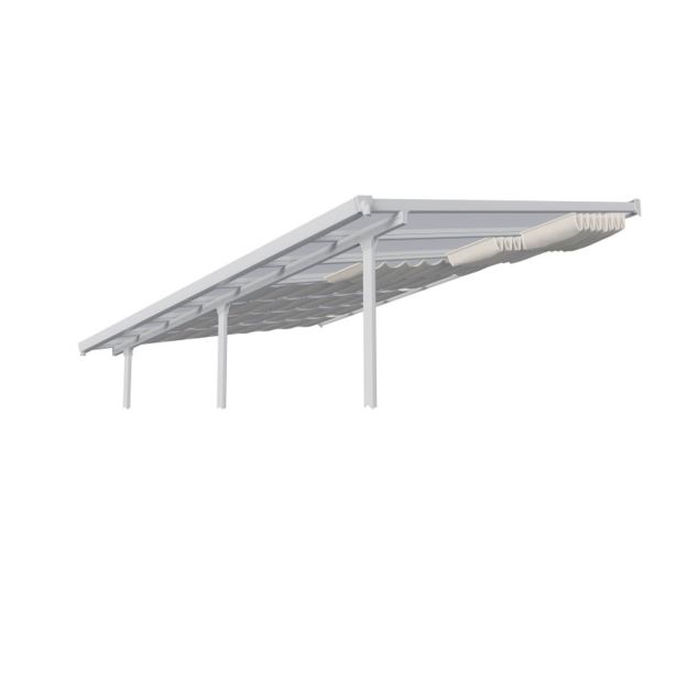 Nadstrešek Palram Sierra z dodatki v beli barvi je namenjeno senčenju prostora.
