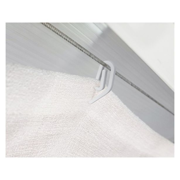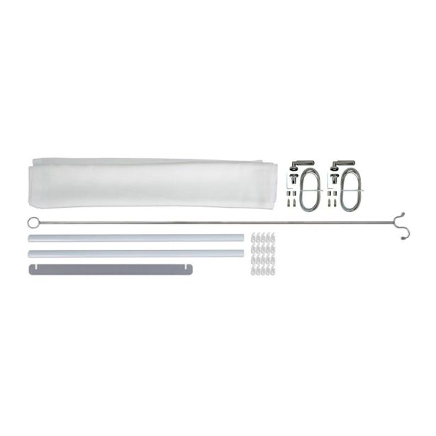 Tkanina za zavese je izdelana iz močnega, UV odpornega in lahkega poliestra.Zavesa je brez gub, plesni in pralna. Vsa strojna oprema vključena, skupaj s posebno kovinsko palico dolžine 108 cm za enostavno odpiranje in zapiranje.