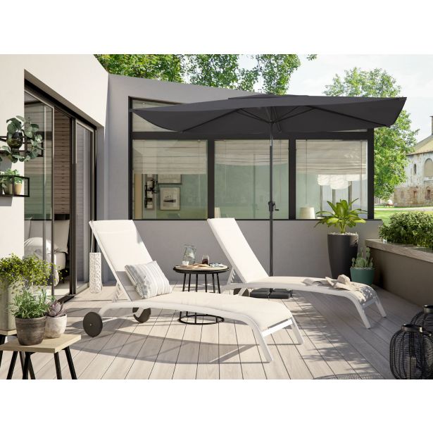 Uživajte v obsežnem senčnem zavetju z Avea Center pravokotnim senčnikom. Njegovo trpežno platno velikosti 2 x 3 metra je vodoodbojno in blokira kar 95 % UV žarkov, kar zagotavlja vrhunsko zaščito pred soncem.