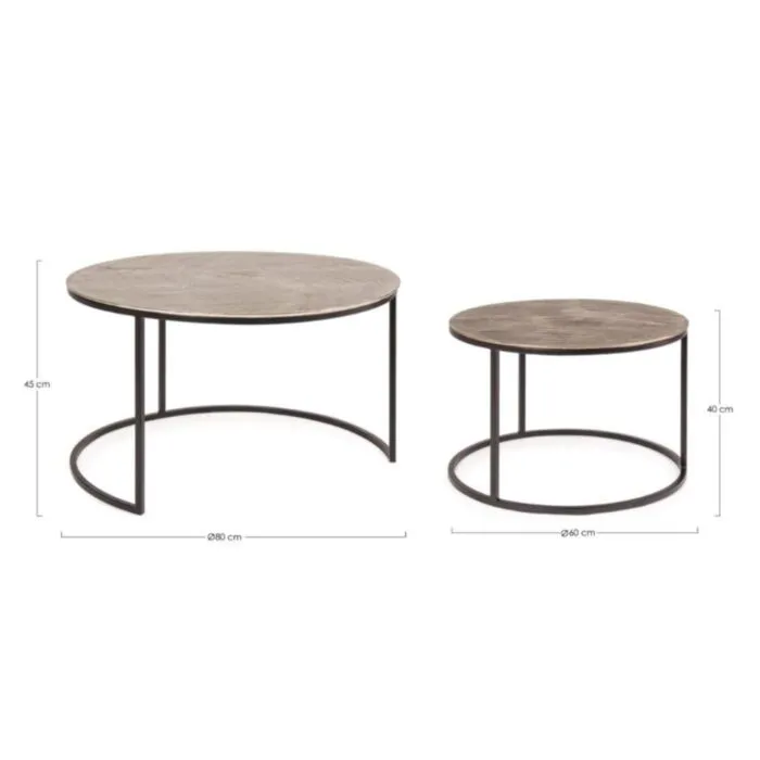 Set 2 klubskih mizic AMIRA X34 ima kovinsko konstrukcijo in aluminijasti vrh. Mize so odličen kos pohištva za vsak ambient. Mizice se razlikujejo po velikosti ter po barvi mizne plošče. Elegantno prileganje ene k drugi, da poseben čar in priročnost v prostor.