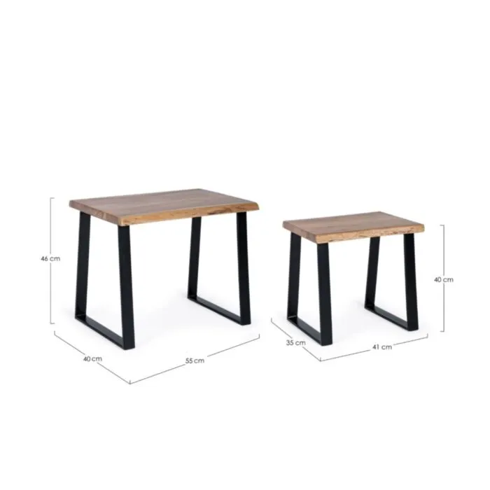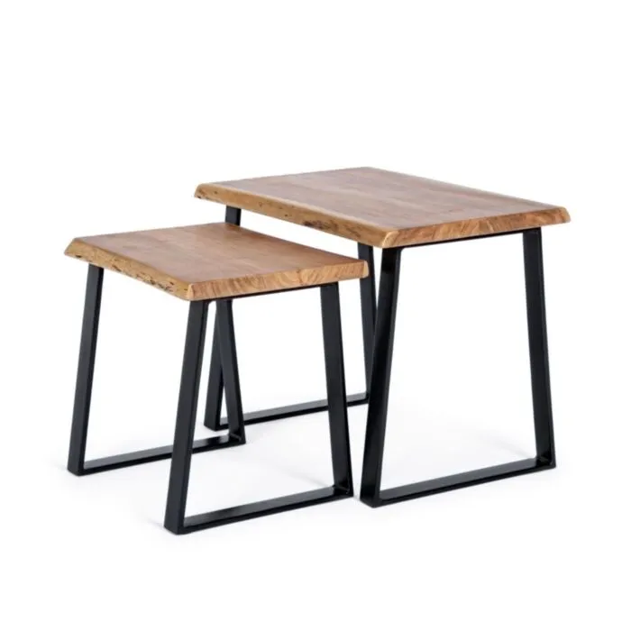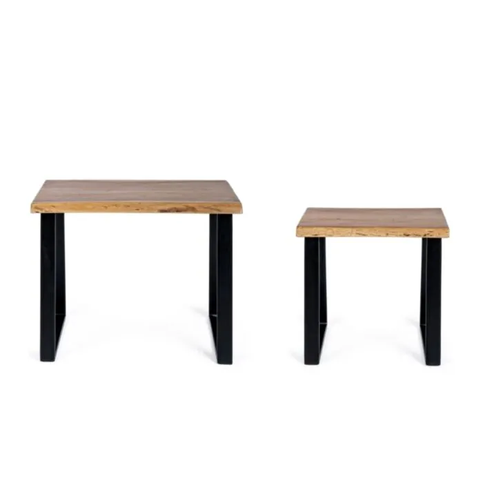 Set 2 klubskih miz ARTUR ima top iz lesa ter stabilne kovienske noge. Les je ročno oblikovan, kar pomeni, da lahko pride do različnih oblik in velikosti. Mizi se prilegata ena v drugo. Zaradi svoje oblike in barve se odlično poda v vsak prostor.