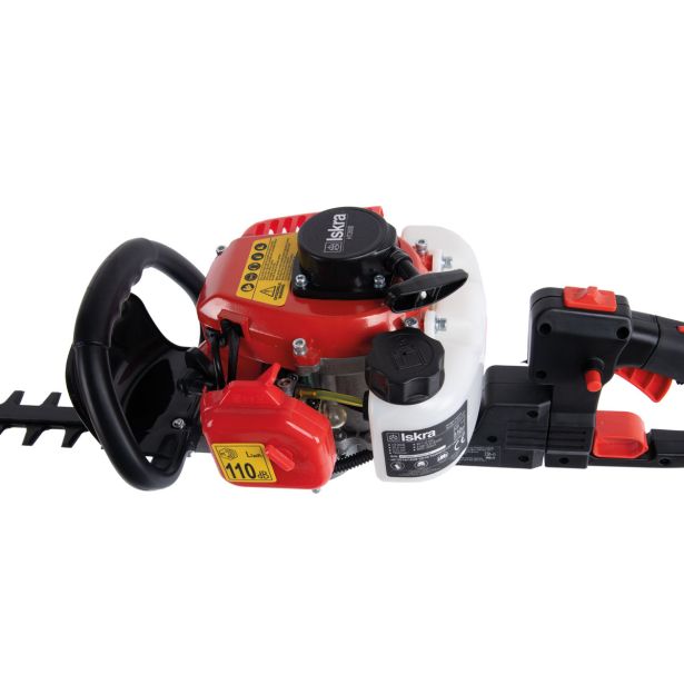 Škarje za živo mejo ISKRA z dvostranskim rezilom so odlična izbira za hitro in učinkovito rezanje grmičevja. Zahvaljujoč 2-taktnemu zmogljivemu bencinskemu motorju, vam ne bo treba skrbeti, da bi motor pregorel. Z dolžino rezanja 600 mm lahko te močne bencinske škarje brez težav režejo večje veje.