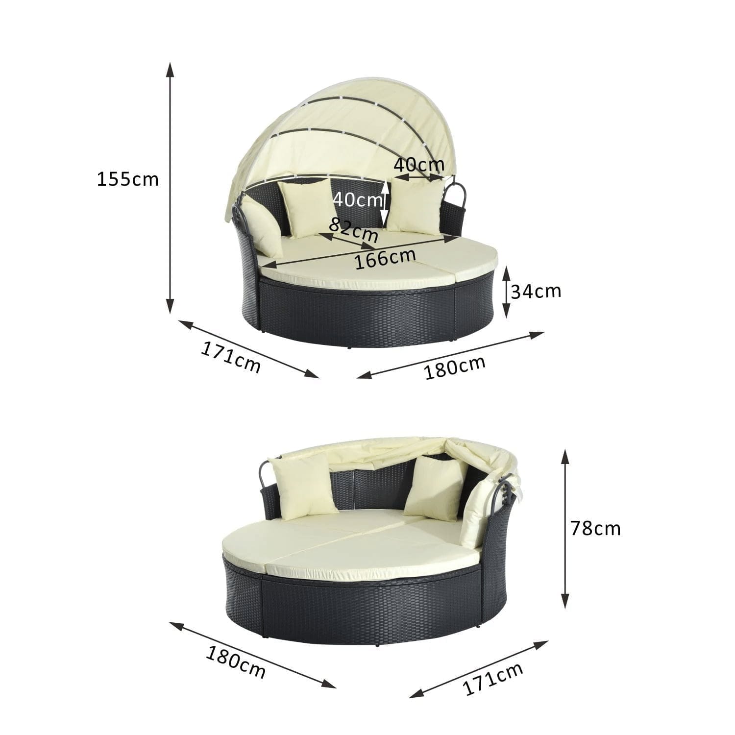počutje vam ponuja Sončni otok GreenVally. Sestavljen je iz dveh delov, tako da ga lahko uporabljate kot udobno okroglo zakonsko poseljo ali pač dva poklrožna kavča s stolčkom. Premična streha skrbi za senco in hlad tudi  najbolj vročem poletju. 5 cm debela blazina pa poskrbi za kar največje udobje.