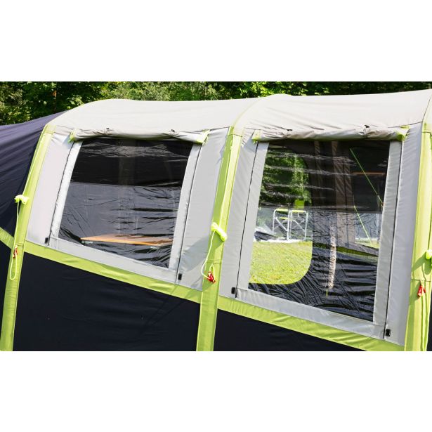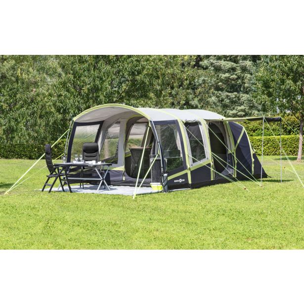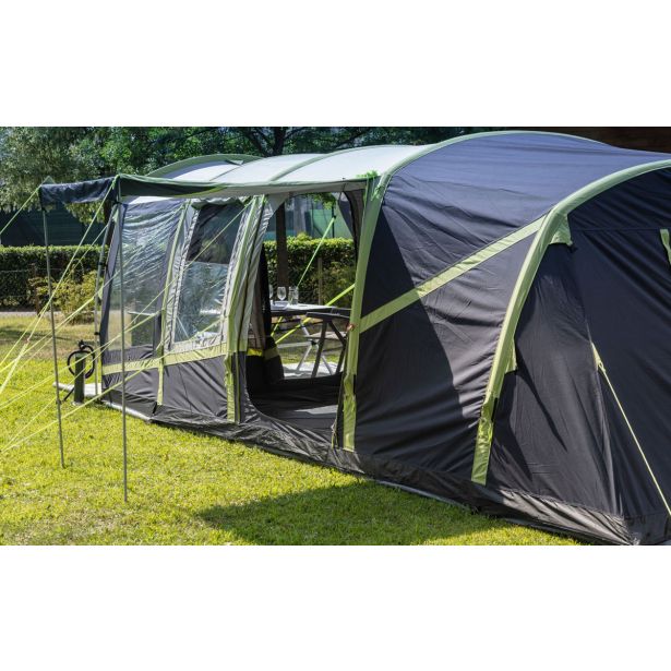 Sistem postavitve šotora je preprost in hiter. Kakovostne jeklene palice zagotavljajo stabilno konstrukcijo tudi v vetrovnem vremenu. Zahvaljujoč pametno zasnovanemu sistemu napenjanja in barvnim oznakam je postavitev hitra tudi za začetnike.