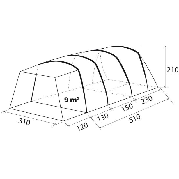 Šotor je izdelan iz vzdržljivega poliestra, ki je vodoodporen in odporen na UV žarke. Tako boste zaščiteni tudi v primeru nenadnih vremenskih sprememb. Dvoslojna zasnova šotora vključuje zunanji sloj in notranjo mrežasto plast, ki izboljša zračnost in preprečuje nabiranje kondenza.