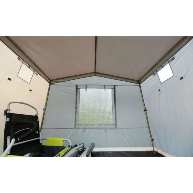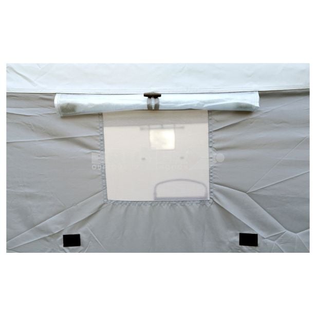 Na zadnji steni se nahaja veliko mrežasto okno, ki ga je mogoče zapreti z reliefno folijo kar je idealno za nadzor zračenja glede na vremenske razmere. Poleg tega šotor vključuje tri dodatne prezračevalne odprtine na sprednji in stranskih stenah, kar omogoča neprekinjeno kroženje zraka ter preprečuje nabiranje toplote in neprijetnih vonjav.
