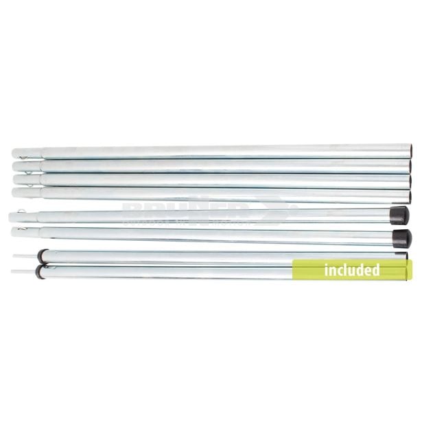 Šotor je izdelan iz kakovostnega PVC/Oxford poliestra in ima trdno všito podlogo, ki nudi zaščito pred vlago, umazanijo in drugimi zunanjimi vplivi. Kovinske palice premera 19 mm poskrbijo za stabilno postavitev, medtem ko priložen montažni material omogoča hitro in enostavno postavitev šotora.