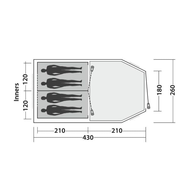 Šotor odlikuje premišljena postavitev s prostorno notranjostjo in višino, ki omogoča udobno stojo v bivalnem delu. Opremljen je z dvojnimi vhodnimi vrati, ki olajšajo dostop in izboljšajo kroženje zraka. Notranji šotor s tehnologijo Sleep-Tight ustvarja temnejše bivalno okolje, kar poskrbi za boljši spanec, tudi ko se zbudite ob jutranji svetlobi.