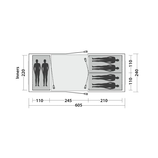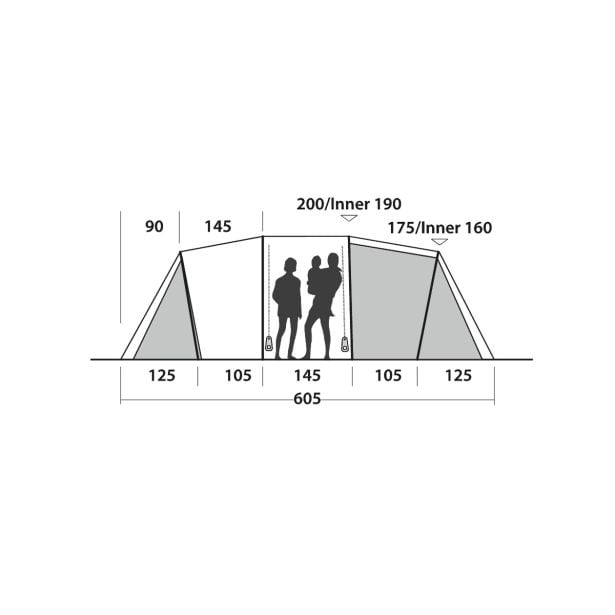 Vsestarnski dizajn Huntsville 600 nudi veliko fleksibilnosti prijateljem in rastočim družinam z različnimi možnostmi zasebnosti, ki jih ponuja notranja postavitev. Z dvojnimi vrati, velikim, svetlim dnevnim prostorom s stojno višino, je šotor enostavno dostopen za srečno skupinko življenje v kampu.