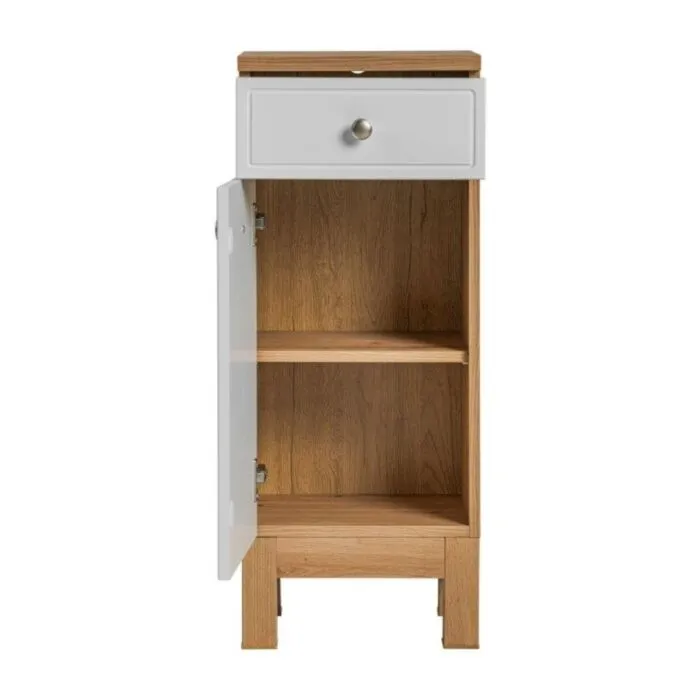 Spodnja omarica SAMSEA 35D je eleganten kos pohištva za vašo kopalnico v beli mat in hrastovi barvi. Narejena je iz kvalitetnih materialov in ima visoko odpornost na praske, tekočine in obrabo.