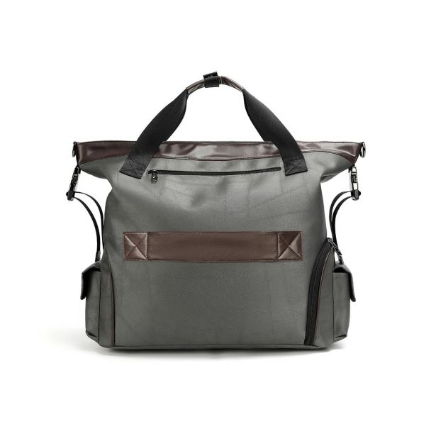 Na straneh torbe so ergonomsko postavljeni elegantni žepi, črni trakovi z rjavo usnjeno obrobo pa ne le estetsko dopolnjujejo obliko, ampak tudi funkcionalno prispevajo k privlačni obliki stranic torbe. Dodatni stranski žep z zadrgo na eni strani pa dodatno izboljša uporabnost.