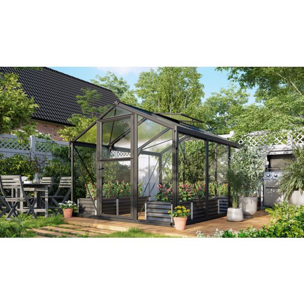 Idealna izbira za vse, ki želijo prostoren in trpežen rastlinjak. Dimenzije: 327,5cm (D) x 260,3 cm (Š) x 213 cm (V).