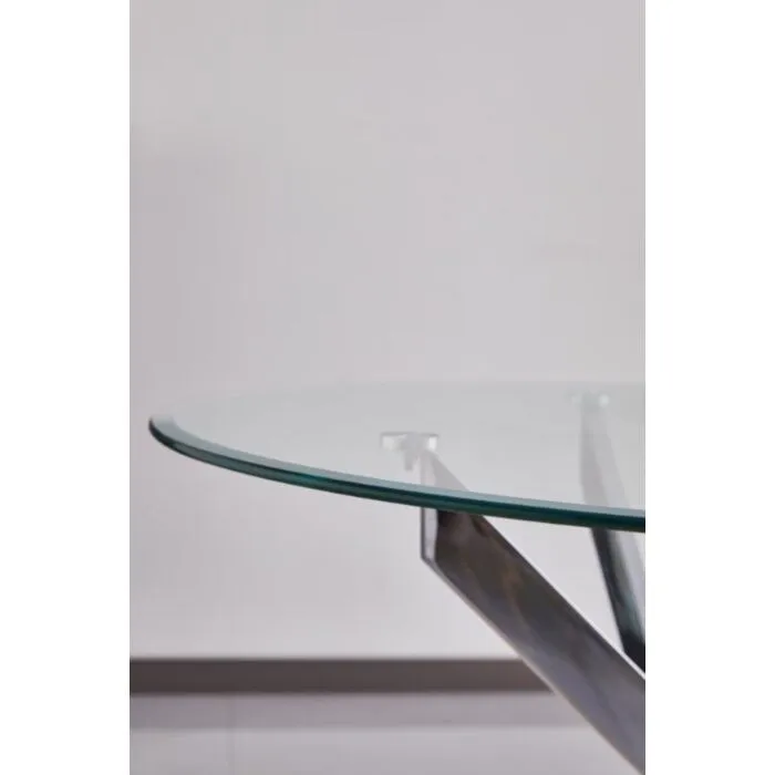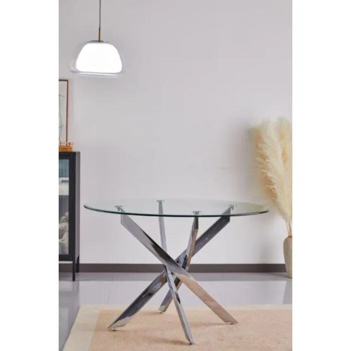 Steklena jedilna miza AIS je modernega dizajna. Narejena iz kakovostnih materialov. Ogrodje je narejeno iz kovine v krom barvi. Mizna plošča pa je izdelana iz prozornega kaljenega stekla.