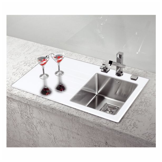 STEKLENO POMIVALNO KORITO ALVEUS CRYSTALIX 10, DESNO, BELA 860X540 MM