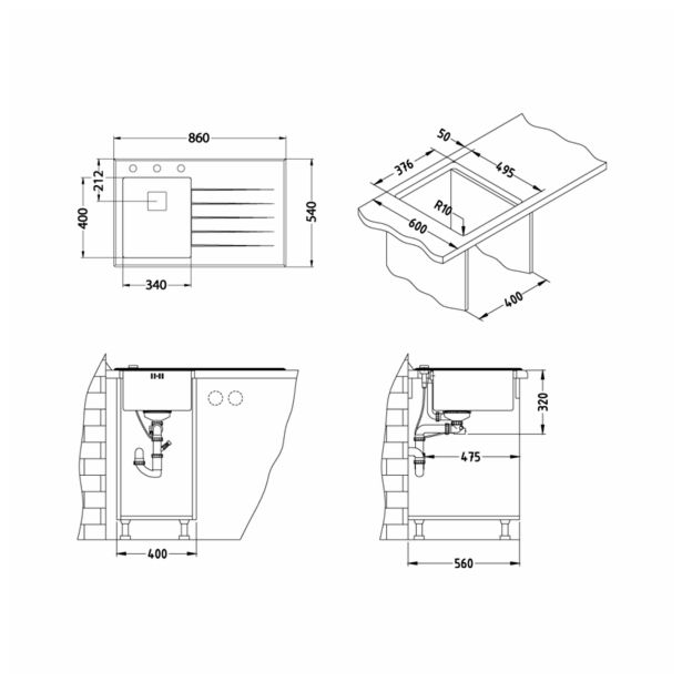 – predhodno izdelane odprtine fi 35 za montažo armature, Pop-up sifona