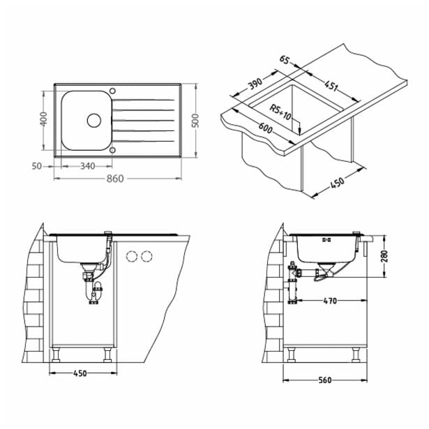 – predhodno izdelane odprtine fi 35 za montažo armature, Pop-up sifona