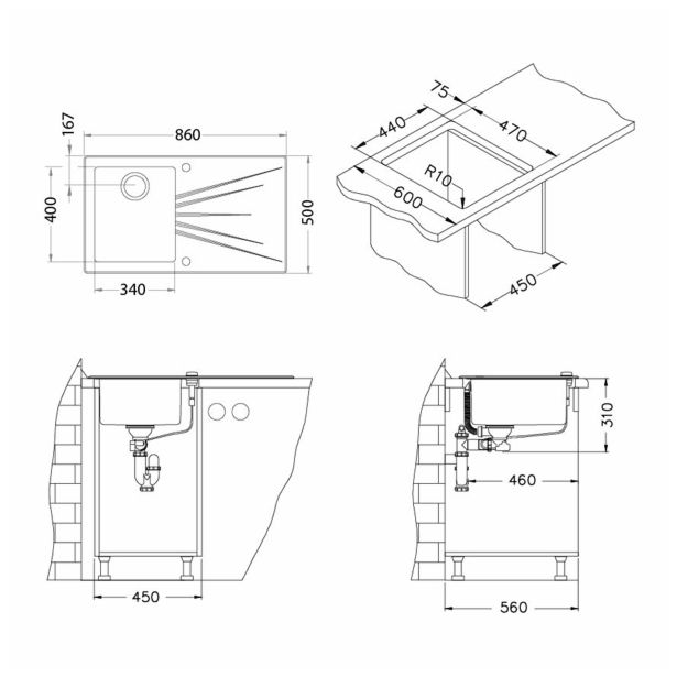 – predhodno izdelane odprtine fi 35 za montažo armature, Pop-up sifona