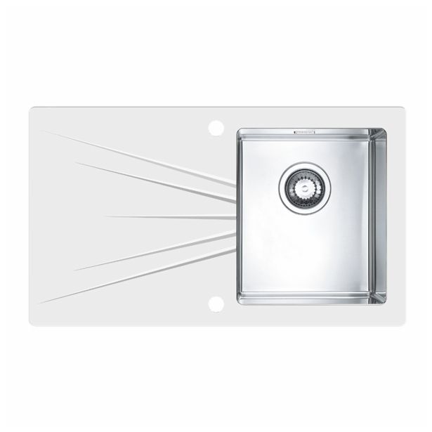 STEKLENO POMIVALNO KORITO ALVEUS KARAT 10, DESNO, BELA 860X500 MM