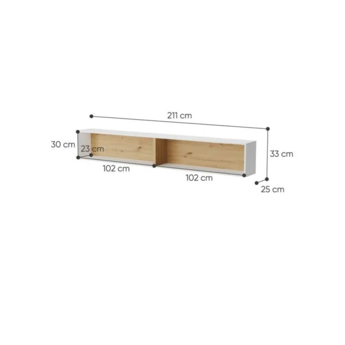 D: 211 cm x G: 25 cm x V: 33 cm
