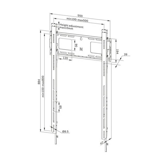 – primeren za POKONČNO POSTAVITEV zaslona z VESA pritrditvijo od 100×100 do 500×800 mm