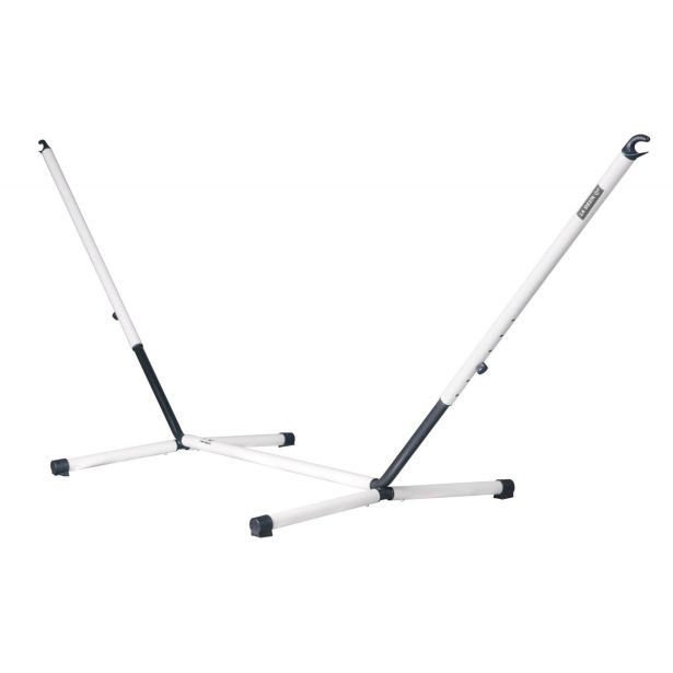 Zelo močno jekleno stojalo za visečo mrežo. Stojalo sestavite ali razstavite v dveh minutah in ga zato lahko peljete s seboj kamorkoli in si ustvarite svojo oazo miru. Odporno proti vremenskim vplivom. Nastavljivo po višini.