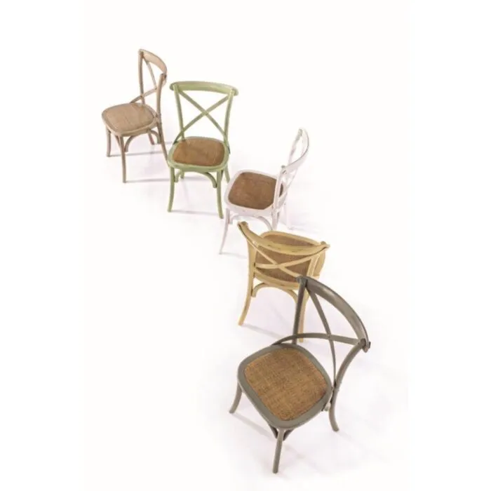 Stol CROSS – sivaje eleganten stol, ki popestri vaš prostor ali okolico. Primeren je tako za jedilnice, kmečke turizme ali opremo gostinskih lokalov. Narejen je iz brestovega lesa, ima podloženo sedišče, kar zagotavlja prijetno sedenje. Oblečen je v naravni ratan.