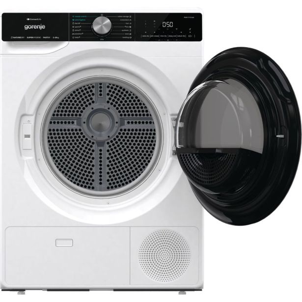 Gorenje DNS12 je sušilni stroj s toplotno črpalko, kapacitete 10 kg, energijskega razreda A++. Ponuja 15 programov, vključno z NatureDry za občutljiva oblačila, ter Wi-Fi upravljanje prek aplikacije ConnectLife. Opremljen je s funkcijami proti mečkanju in senzorjem vlage za optimalno sušenje.